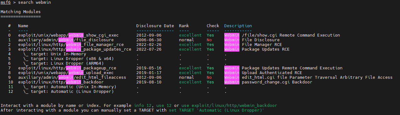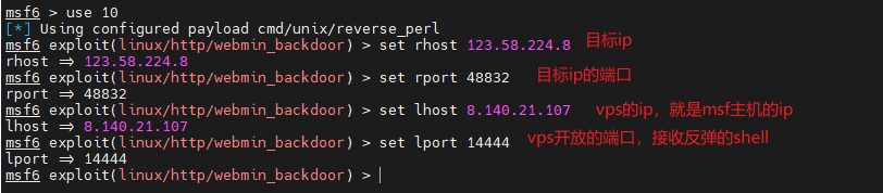 启动vps上的msf,进入命令行模式,搜索webmin相关的poc